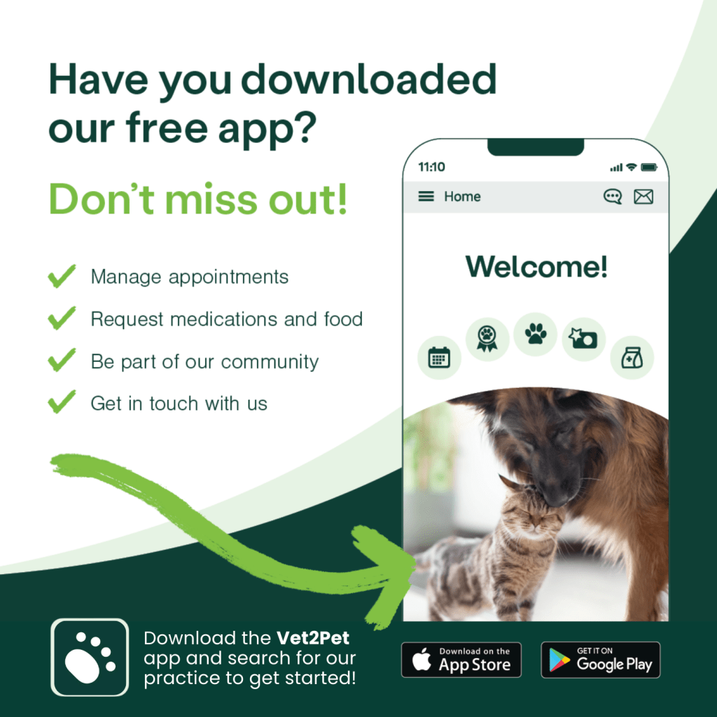 Download our app to easily access your pet’s information, manage appointments, and share adorable Pet Selfies. The app also keeps you connected with our practice so you never miss important updates. Stay in the loop with flash deals, monthly promotions, and more — all in one convenient place.